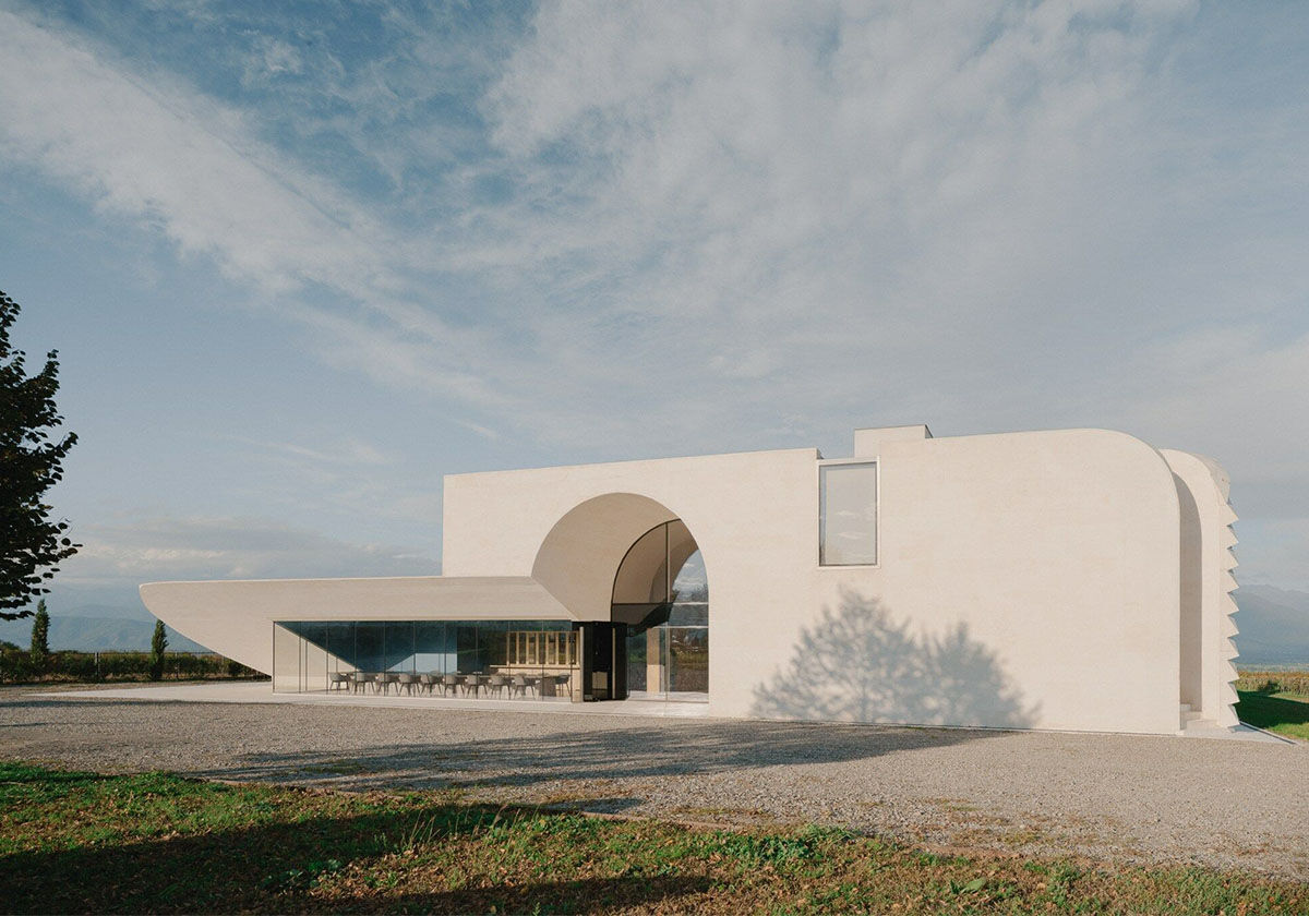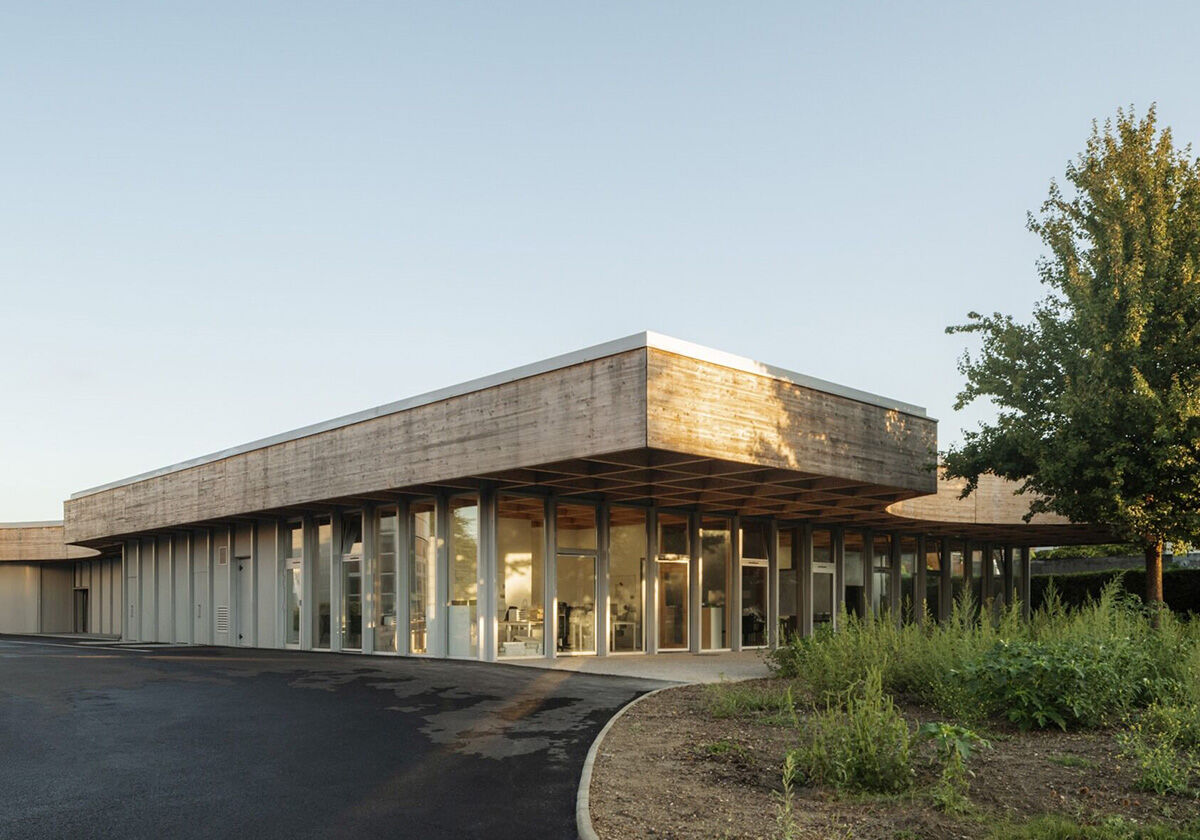 Die Unternehmenszentrale des Bergsportausrüsters fügt sich mit ihrer markanten Form und einem eigens entwickelten Sonnenschutzsystem in die Landschaft im unteren Inntal ein.