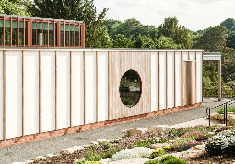 In der Grafschaft Kent, südöstlich von London, liegt das Anwesen Ightham Mote, das sich im Eigentum der britischen Denkmalpflegeorganisation National Trust befindet. Mit seinem von einem Wassergraben umgebenen Herrenhaus aus dem 14. Jahrhundert ist es ein beliebtes touristisches Ausflugsziel. Auf dem Gelände heißt nun ein neues, klimagerecht konzipiertes Empfangsgebäude die Besucher*innen willkommen. Es wurde nach einem Entwurf von Reed Watts Architects (London) realisiert, die dabei eng mit den Landschaftsarchitekt*innen von Colvin & Moggridge (Filkins) zusammenarbeiteten.