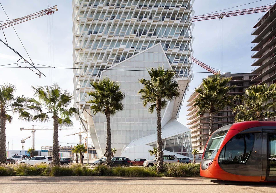 Auf diese Asymmetrie folgt eine symmetrische Turmkubatur, die sich in Rücksprüngen nach oben verjüngt und damit an eine verzerrte Hochzeitstorte erinnert. Zum Raumprogramm gehören 93.836 Quadratmeter Handels- und Büroetagen sowie 26.282 Quadratmeter Konferenzräume, Wellnessbereich, Kundencenter und drei Etagen für Führungskräfte.