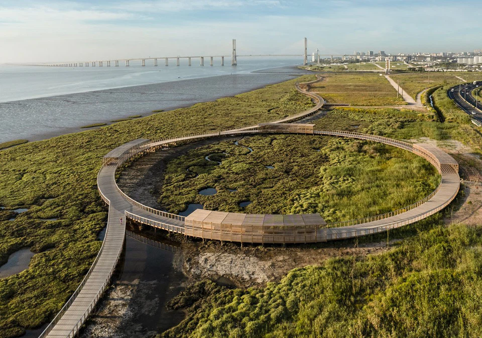 Ergänzt wird dieser Aufbau durch eine erhöhte Stegstruktur, die sich konstruktiv an den Gaoqiao-Brücken orientiert. Sie führt durch den Bambushain und eröffnet Blickbeziehungen zu Landschaft und der Brücke. Details wie bewusst gefügte Holzbohlen zitieren die charakteristischen Fugen der historischen Steinbeläge. Auch im Inneren bleibt der Entwurf in der lokalen Bautradition verankert: Fensteröffnungen in Kürbis-, Kreis- oder Dreiecksform verweisen auf regionale Bauweisen. (dsm)