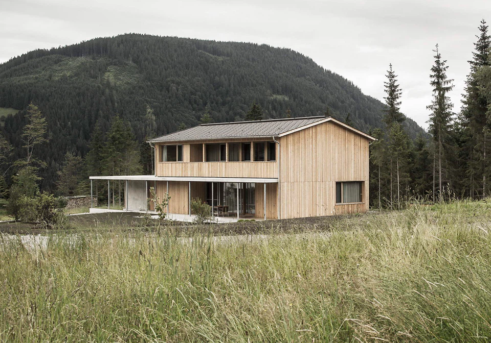 Auch wenn das für seine Holzbauexpertise bekannte Büro LP architektur (Altenmarkt im Pongau) bereits etliche Hybrid-Bauten im Portfolio hat – das Wohnhaus, das für eine private Bauherrschaft in der Gemeinde Schleedorf im Salzburger Land entstand, sticht auf den ersten Blick doch ziemlich heraus. Vier massive, hohe Betonrotunden dominieren das Erscheinungsbild von Hof Wimmer.