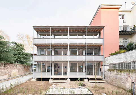 Wer sich stärker mit seiner Nachbarschaft vernetzen möchte, dürfte Freude am Revival der Laubengänge im Wohnungsbau haben. Längst dienen diese nicht mehr nur der Erschließung, was unter anderem FAR frohn&rojas mit ihrem Wohnexperiment in Kaulsdorf beweisen: Die wellenförmigen Buchten gewähren jedem Wohnungseingang ihren eigenen Freisitz. Im Wohnquartier in der Wiener Huebergass von GWJ Architektur sind es erst die hölzernen Laubengänge, die mit Pflanztrögen, Fahrrädern und Sitzmöbeln den gemeinschaftlichen Charakter zeichnen. (tg)